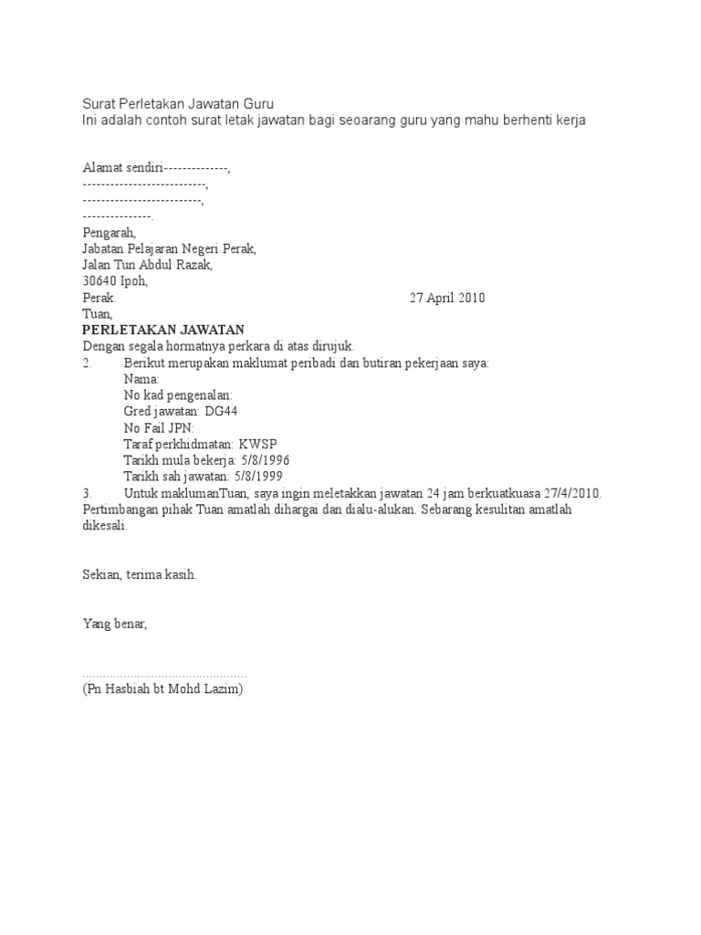 Contoh Surat Perletakan Jawatan Guru Tadika Kumpulan Contoh Surat Dan Soal Terlengkap