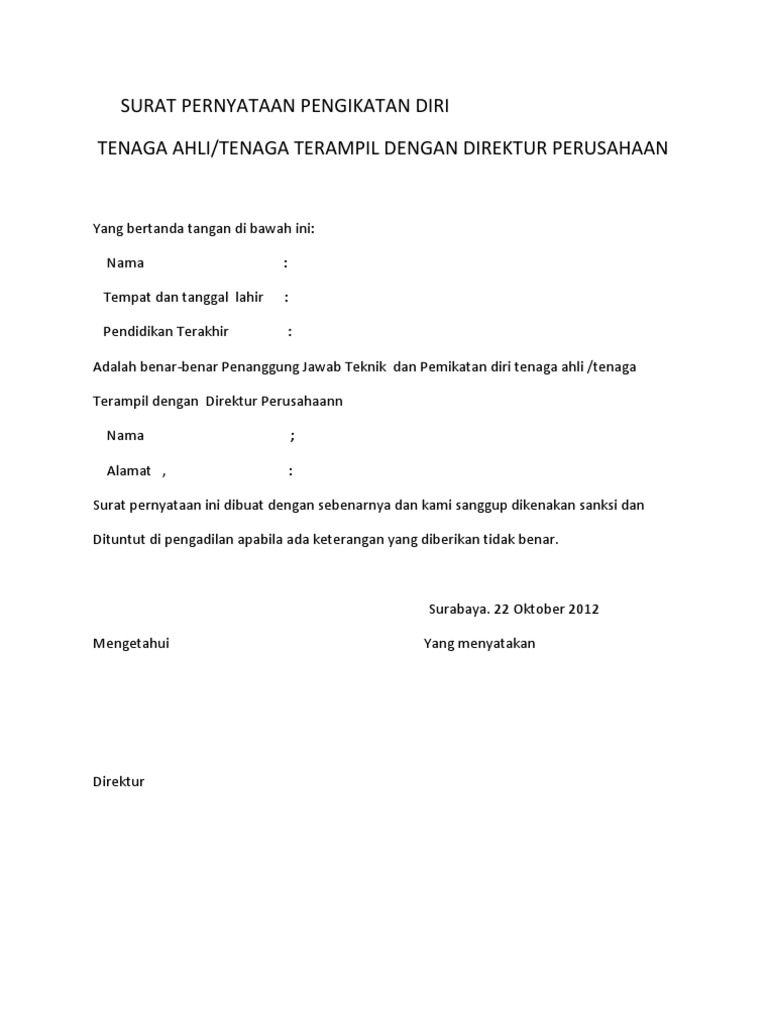 Contoh Surat Pernyataan Tenaga Ahli Perusahaan Kumpulan Contoh Surat Dan Soal Terlengkap